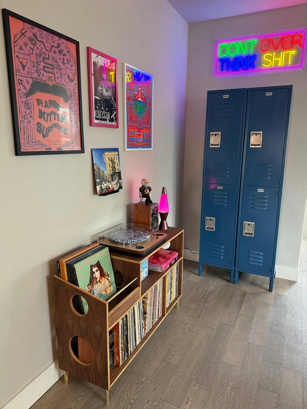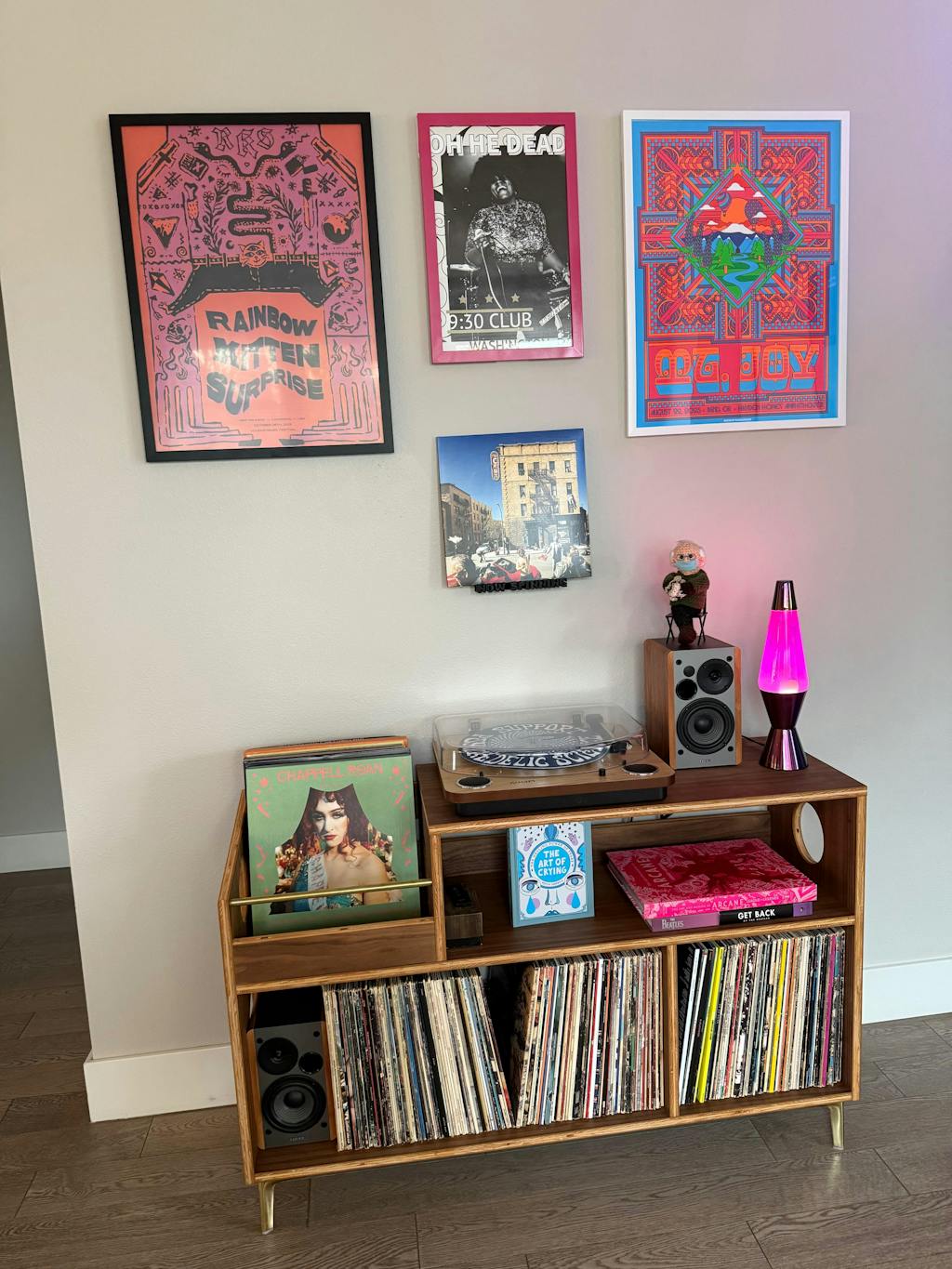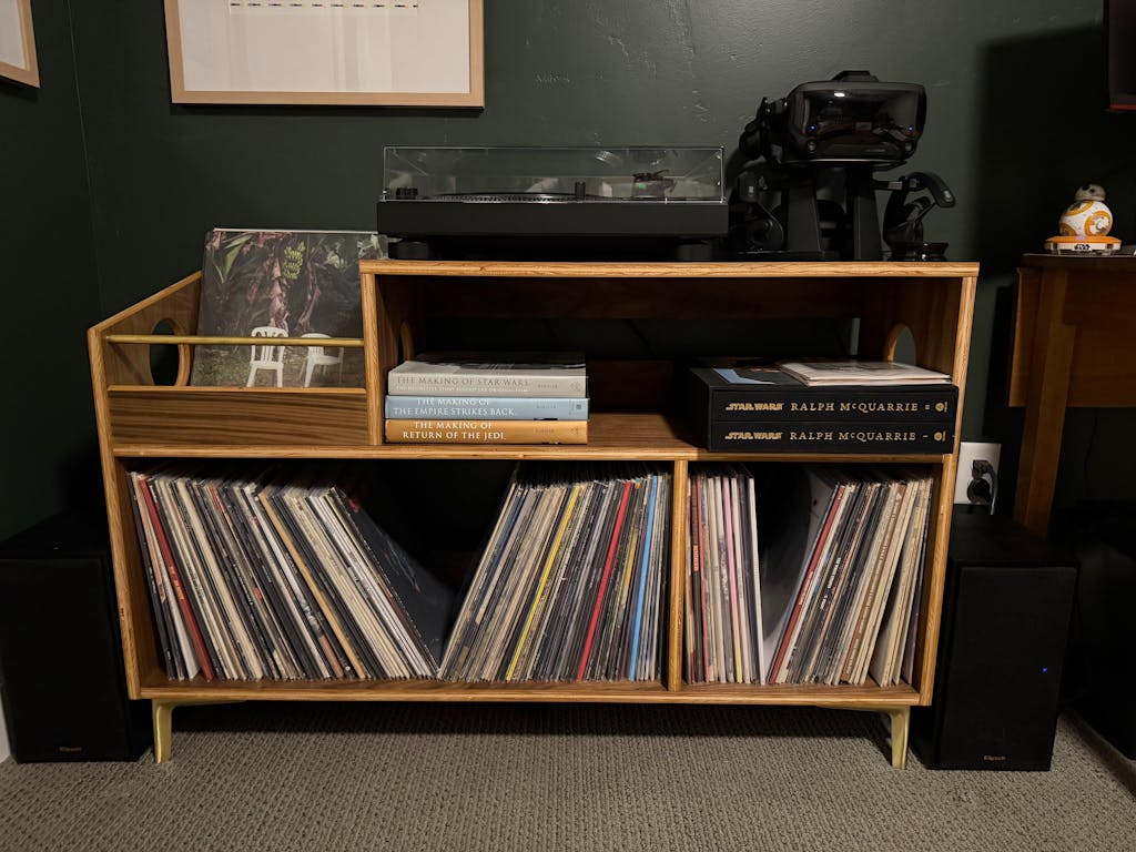 The "Headliner": The name says it all! The Headliner is the ultimate record console. Ample storage for approximately ~300 12” records. Plenty of room for a turntable, receiver, speakers, etc. This is an awesome way to show off your collection.